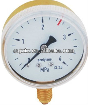 The oxygen presure gauge and acetylene pressure gauge is used to measure pressure of oxygen medium. and must be kept away from grease substance.Forbit the oill mark is red on dial prevent ill tread.