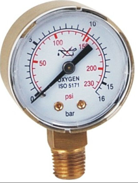 The oxygen presure gauge and acetylene pressure gauge is used to measure pressure of oxygen medium. and must be kept away from grease substance.Forbit the oill mark is red on dial prevent ill tread.